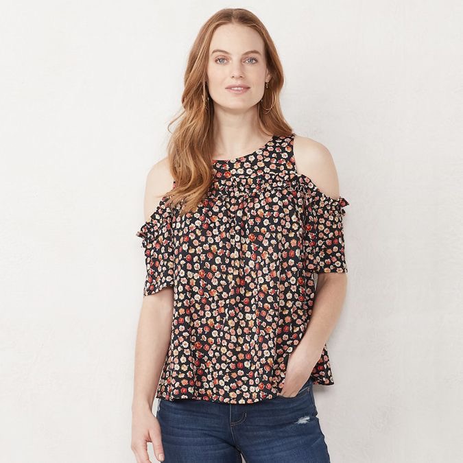 Laying out new prints at LC Lauren Conrad is always a great moment before the new season gets underway, LC Kohl’s first goes for the lemon spree littered up and down on a black graphic tee, check patterns make room to overlay delicate floral prints in print savvy blooms on an open shoulder top, lucia blooms have been big with LC Kohl’s where they’re found on a black dress, ditsy is delicate but not boring which gives a perfect balance on a ditsy point blue dress, and moodier backgrounds are in style to add punch and pop found in Fleurie India Ink.