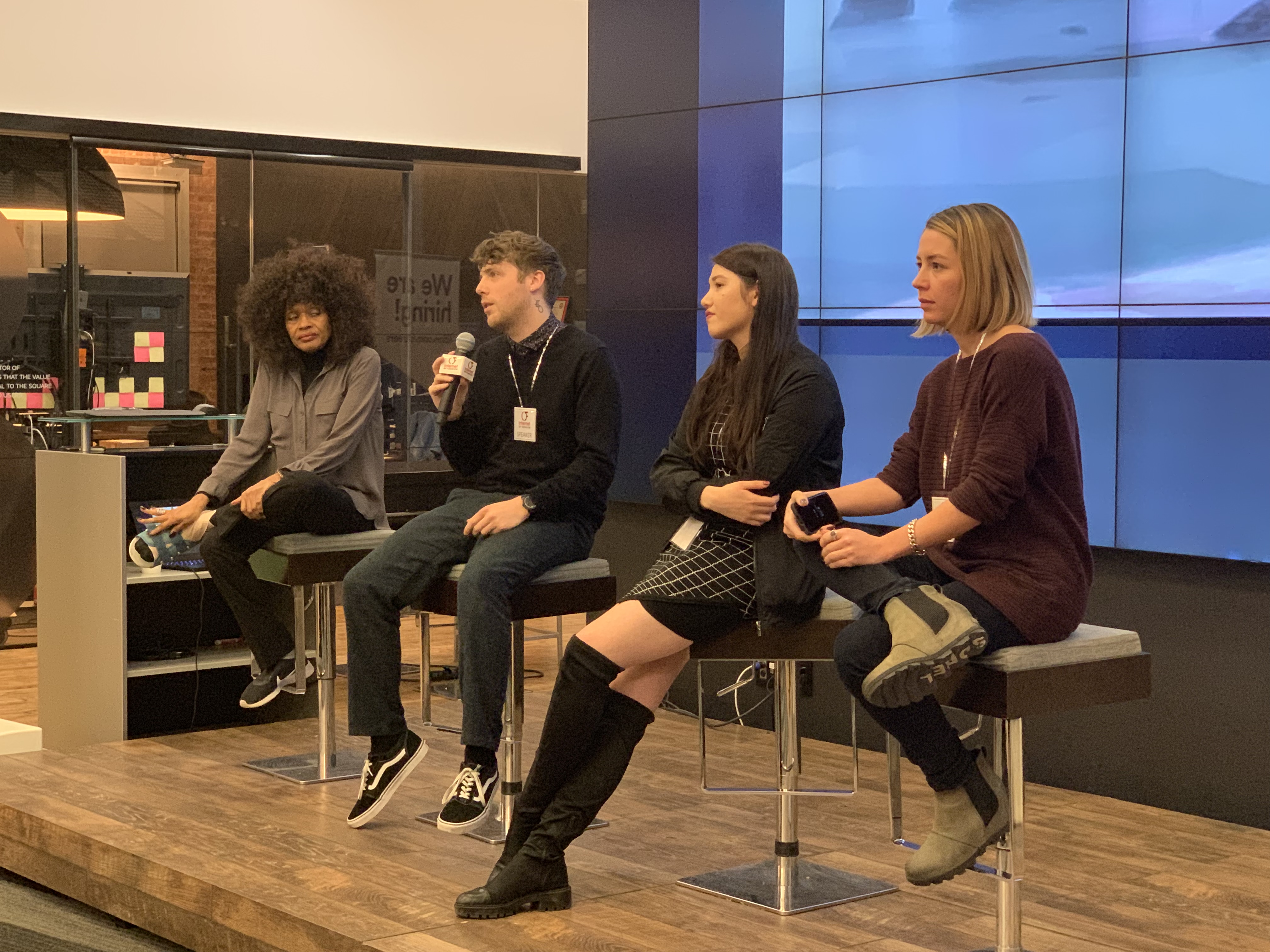 Leanne Luce kicked off the evening describing her experience in technology and fashion, explaining how creating intelligent design such as pick pockets on jackets and other clothing pieces through computer design can enhance fashion design drastically because it’s able to tap into new dimensional aspects of design discovering new kinds of shapes of designing a specific feature on something like a dress or jeans.