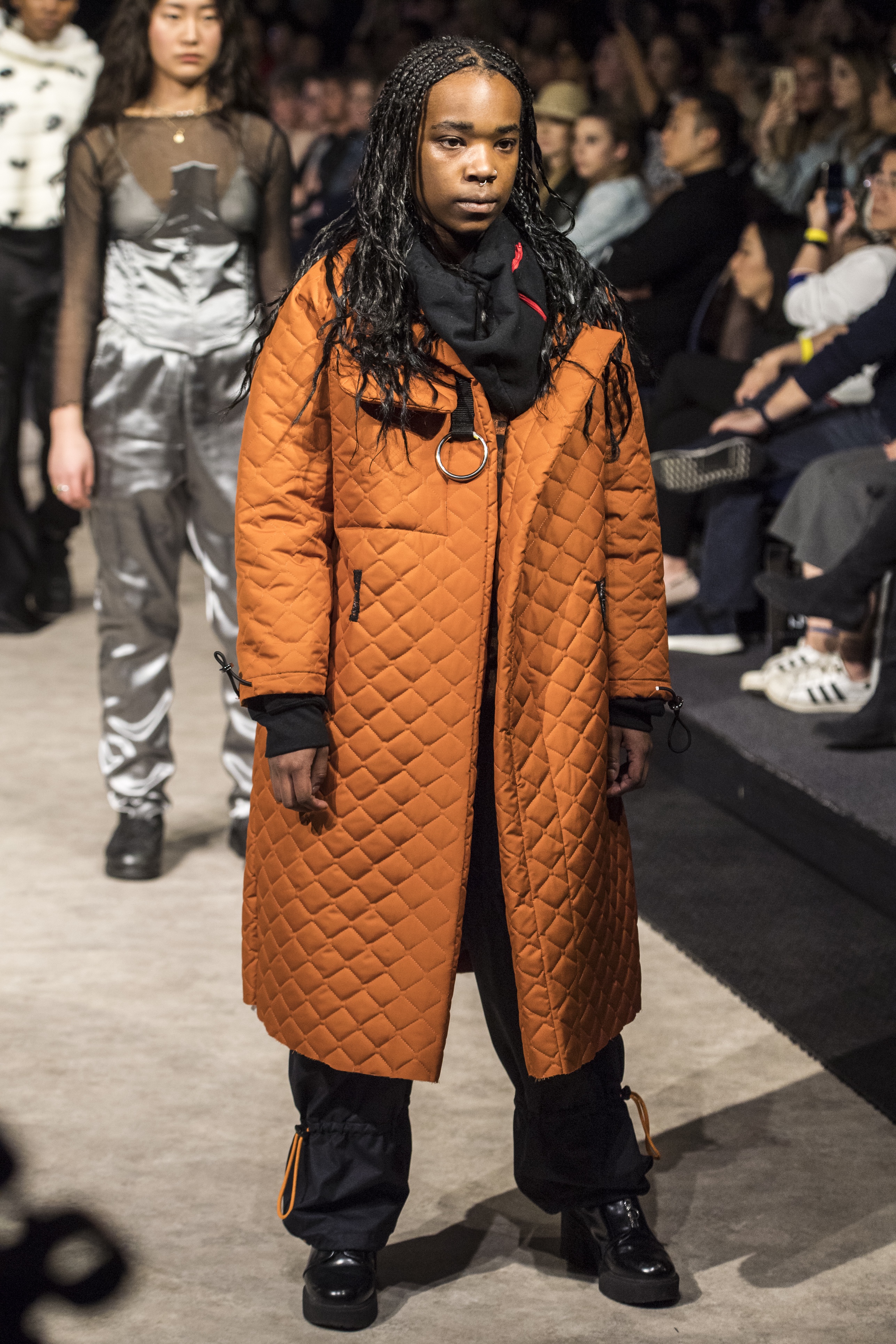 Jessica Chang Chih Yun of Jessica Chang Studio in New York highlighted clever craftmanship for FW19. With a strong background in fine art, Jessica has manipulated fabrics in creative ways for this collection to form structure and silhouette. Jessica’s ensembles move through a colour scheme of white, pale pink, deep purple, and blues. Inspired by ‘Sequences’ and discovering how to document change, even the way the fabrics have been dyed has been carefully considered, the dye developing through exposure to the sun with wrinkles and folds leaving an imprint on the material. Visually intriguing ruffles, pleating, and wrap over elements made for a robust textile narrative.