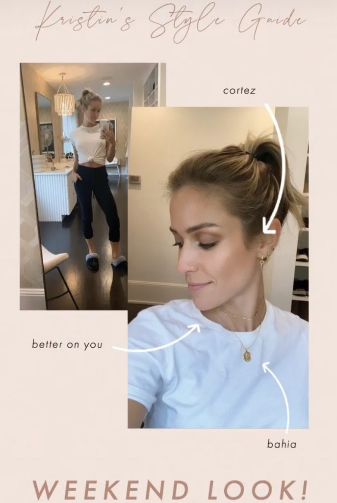 Kristin Cavallari took no day off today with putting up a style guide for Uncommon James, but it’s not your usual Monday through Friday style, it’s the weekend look, right off the UJ Instagram Story of Cortez, Bahia, and necklace that’s called Better On You.
