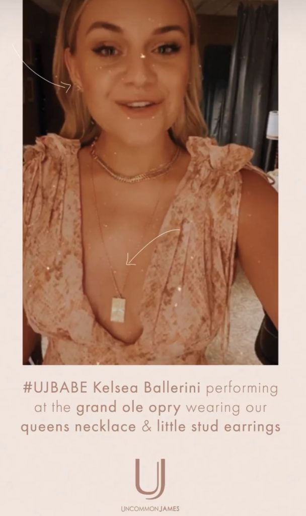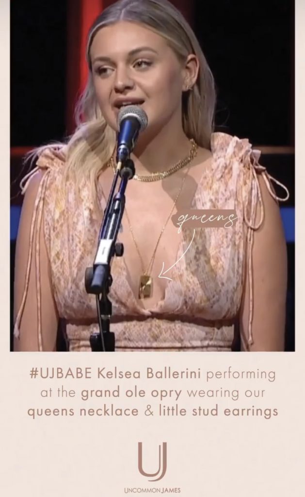 Uncommon James, created by Kristin Cavallari, showed off more celebrity love today on their Instagram story for the brand that’s got Hollywood buzzing, this time it’s in Kristin own backyard of Nashville, Tennessee, where country/ pop star, Kelsea Ballerini, showed top love for Uncommon James when performing at the Grand Ole Opry.