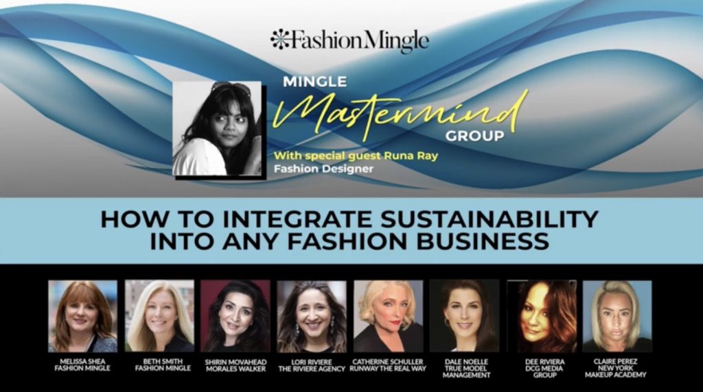 Fashion Mingle and its Mingle Mastermind Group today buckled down for another weekly webinar on the climate of the fashion industry, this week’s guest is Runa Ray, who’s best known for creating sustainable fashion, which has become the new trend post-COVID19, but learning “How To Integrate Sustainability Into Any Fashion Business”.