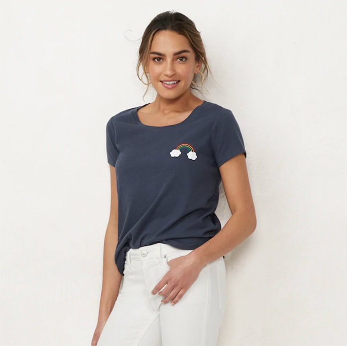 At the end of the rainbow, there’s an LC Lauren Conrad relaxed graphic tee that exudes confidence with jersey construction and crew neck.