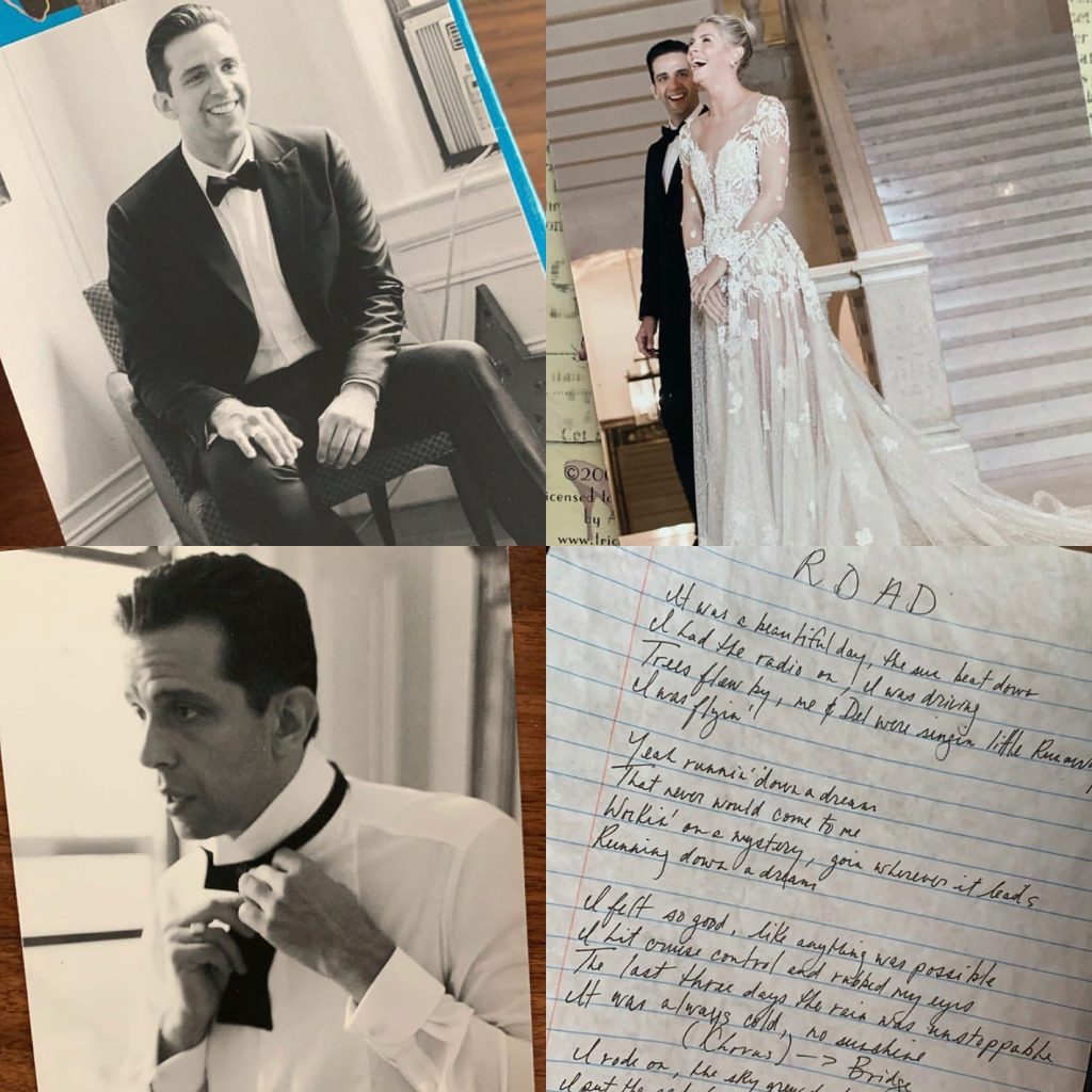 Amanda was looking through old boxes of photos, and came across these memorable moments from when the two tied the knot, plus written lyrics from a song that Nick wrote called “Road”.