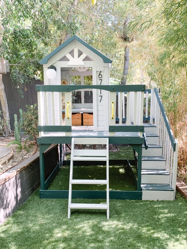 Lauren Conrad and her Lauren Conrad Co. team have been spending lots of time at home lately, and with no weekend plans on the horizon, the time came to do home improvements long on the back burner, like giving one child’s playhouse a new look today in the backyard.