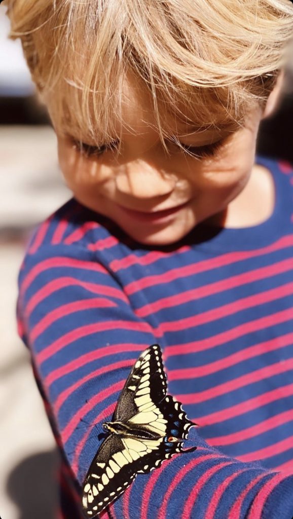 There’s nothing like witnessing something new from the beauty of nature, something that’s existed from the beginning of time, now it’s someone’s turn to see something from nature, it’s Lauren Conrad’s son, Liam James Tell, who sees a fully blossomed butterfly on his arm on Tuesday.