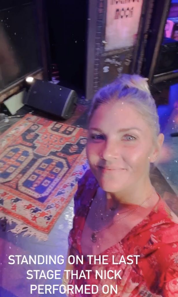 Amanda Kloots did something today that remains forever sacred for Amanda, and those who were close to the late Nick Cordero, Amanda stood on the last stage her late husband performed on, The Bourbon Theater in Hollywood where Nick performed in the Broadway hit “Rock Of Ages”.