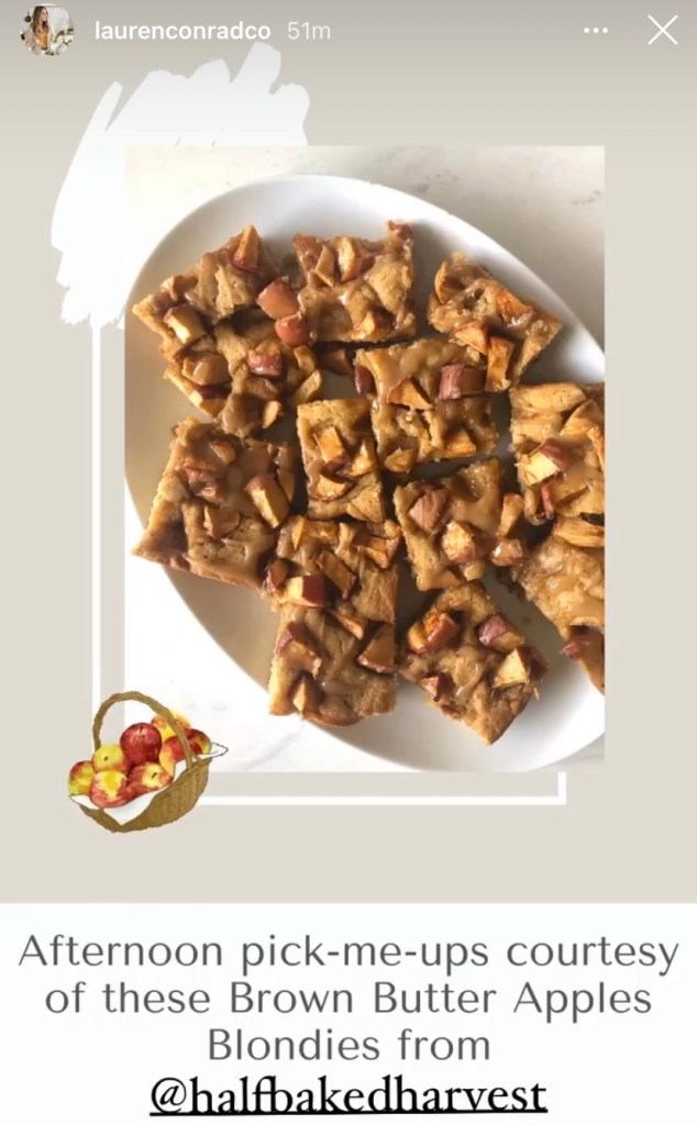 Lauren Conrad and her crew at LaurenConradCo Instagram today have found a sure fire way to make it the best October ever, they reach for the Half-Baked Harvest recipe of brown butter apple blondies, that go for the soul at just a glance.
