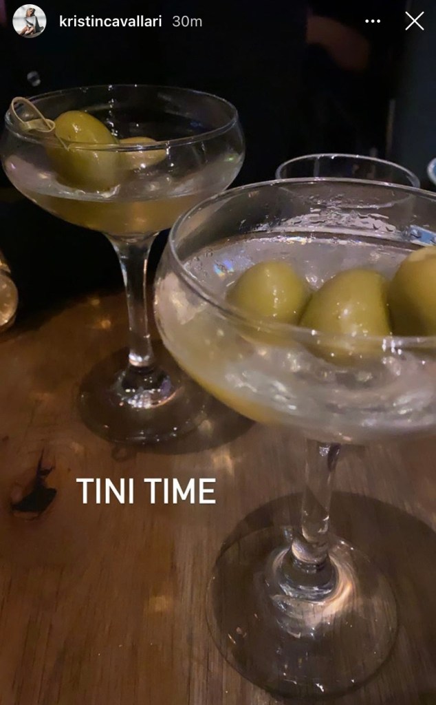 Look closely, and you’ll see something very savory, and hard to resist, it’s tasty and luscious olives, big green and red from up close, floating in a drink you know and love, it’s a martini, Kristin Cavallari takes the perfect picture tonight down in Charleston, South Carolina for her weekend adventure.