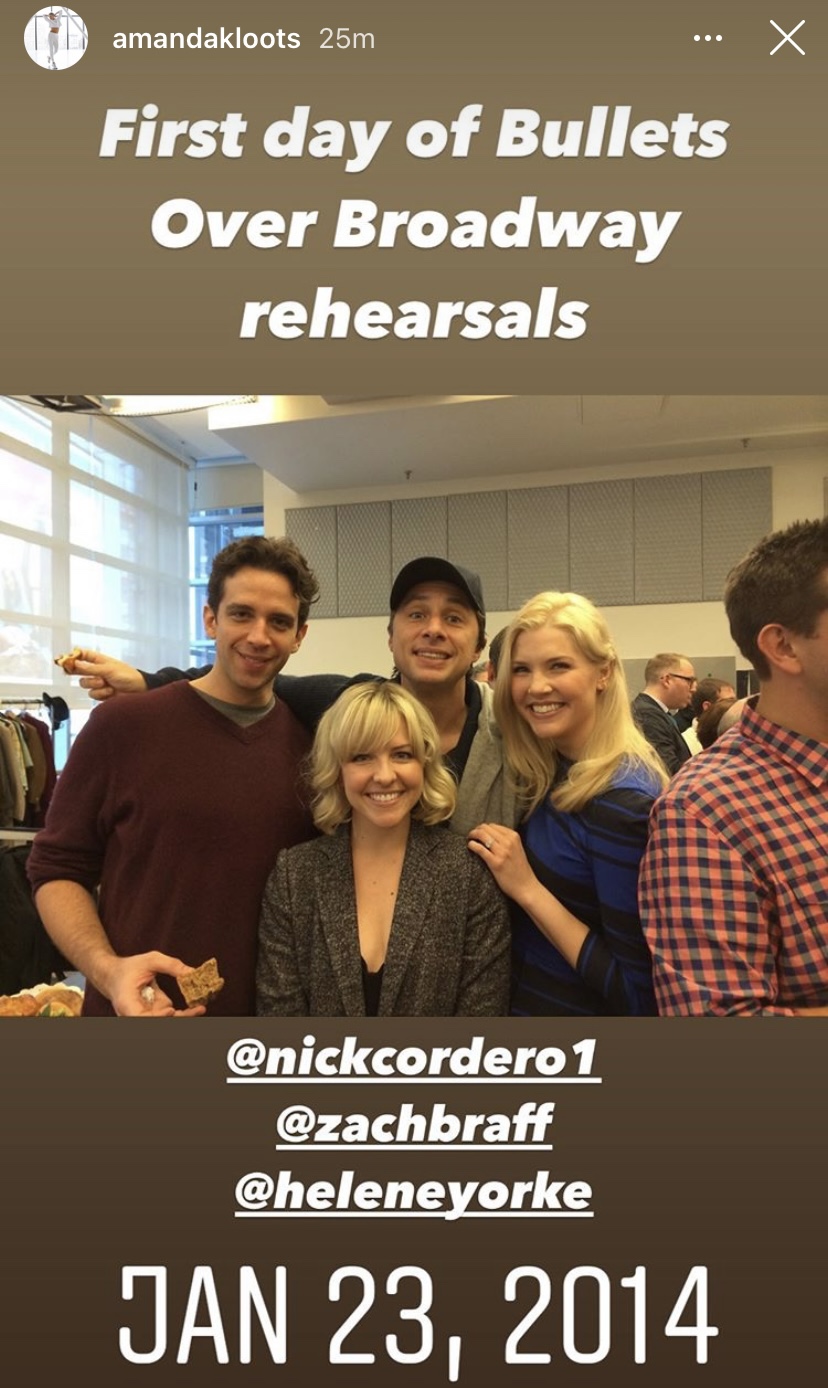 Amanda Kloots tonight remembers when her late husband, Nick Cordero, began rehearsals for the Broadway smash, “Bullets Over Broadway”, back in 2014 with a whole bunch of friends on Nick and Amanda’s side, including Nick’s long time BFF, Zach Braff, in its first days of 2014, fast forward to June of that same year where Amanda just has a beloved photo of her late husband, Nick.