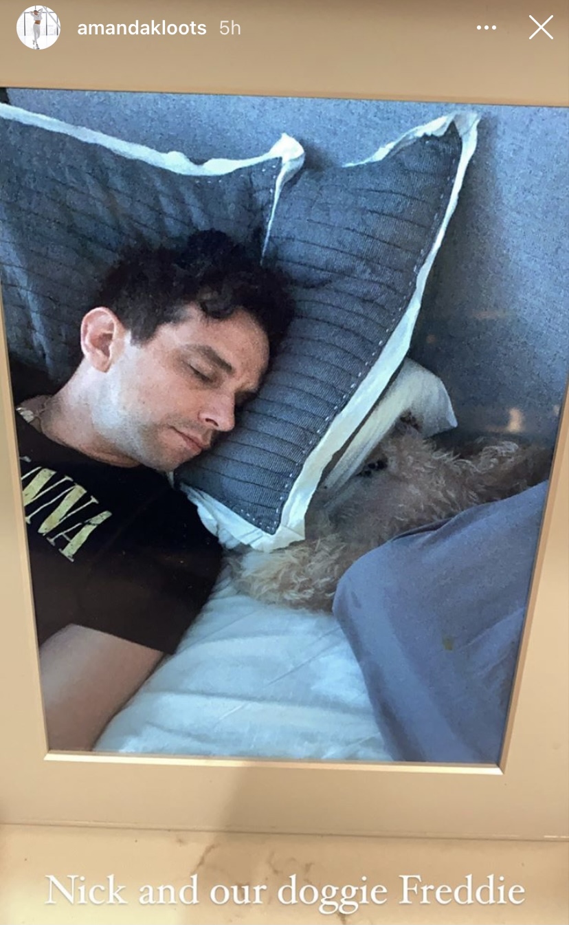 Amanda Kloots today shared more pictures of her late husband, Nick Cordero, in many different places like Nick and Amanda posing with friends when attending a wedding, a movie premiere with Zach Braff, Nick sleeping with their doggie, Freddie, and one of Amanda’s favorites of just Nick and Amanda being together, with the picture frame by Aura Frames, who makes digital picture frames where you can upload over 1,000 images.