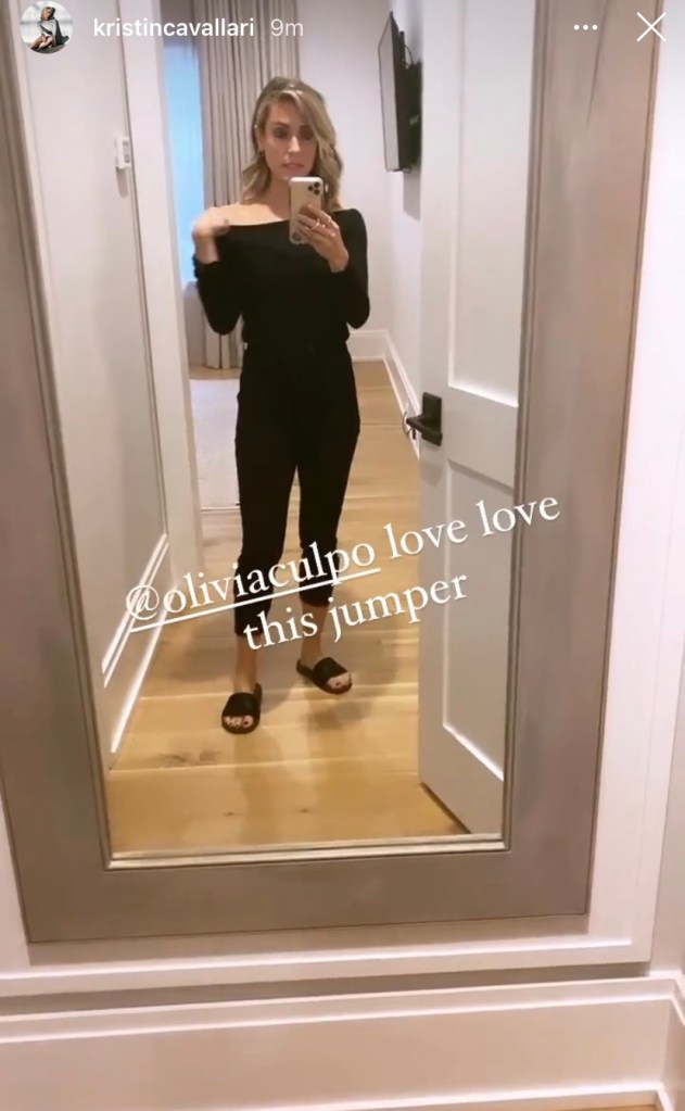 Kristin Cavallari brought her A-Game tonight to the best selfie of all, the mirror selfie, it’s helped yours truly on past Halloween’s, now it’s in Kristin’s sights once again while wearing a jumper by Olivia Culpo, which Kristin declares as the coziest jumper, and is friggin’ obsessed with the jumper, as well as the other goodies Olivia sent Kristin.