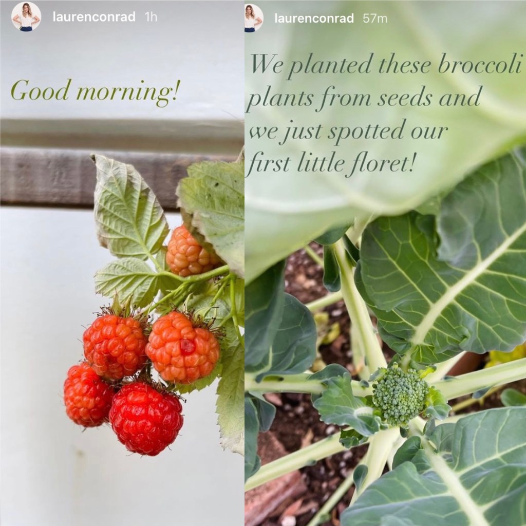 Lauren Conrad got her morning off to a great start, first by showing off wonderful raspberry grown directly right out of Lauren’s garden, but Lauren put the spotlight on her broccoli today where seeds were planted and just now the florets of broccoli are starting to bloom.