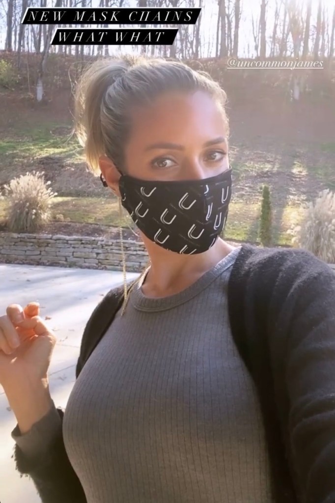 Kristin Cavallari added a new element to her Uncommon James Logo Face Mask today, Kristin welcomed the addition of Uncommon James Mask Chain made of 14 karat gold that easily connects to the UJ Logo Face Mask, adding a boost of glam to staying safe.