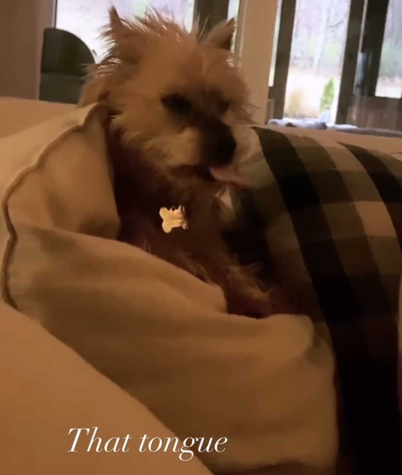 Kristin Cavallari’s little doggy was showing a little tongue action today as this cute puppy was going in and out with its tongue repeatedly, all while Kristin and the kids took a sick day.