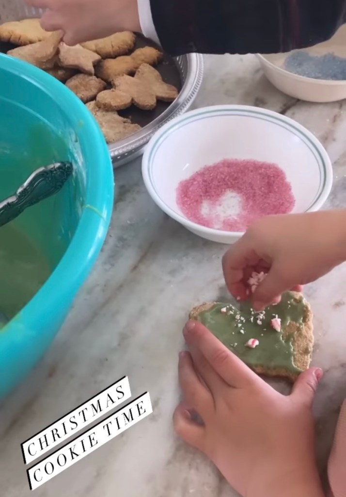Kristin Cavallari in these 5 days left before Christmas today spent time with her 3 children of Camden, Jaxon, and Saylor making cookies for Christmas, baked right out of the oven with frosting, Christmas cutter shapes, and sprinkles.