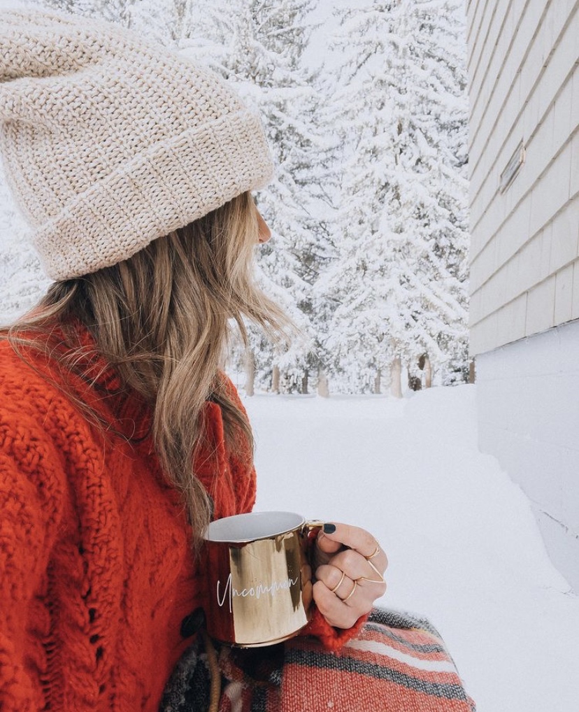 Uncommon James today with their UJBABE Of The Week features National Parks lover, @cleverandcatchy , who wears a wonderful outfit of winter while sipping hot cocoa in an Uncommon James mug with UJ Caged Ring.