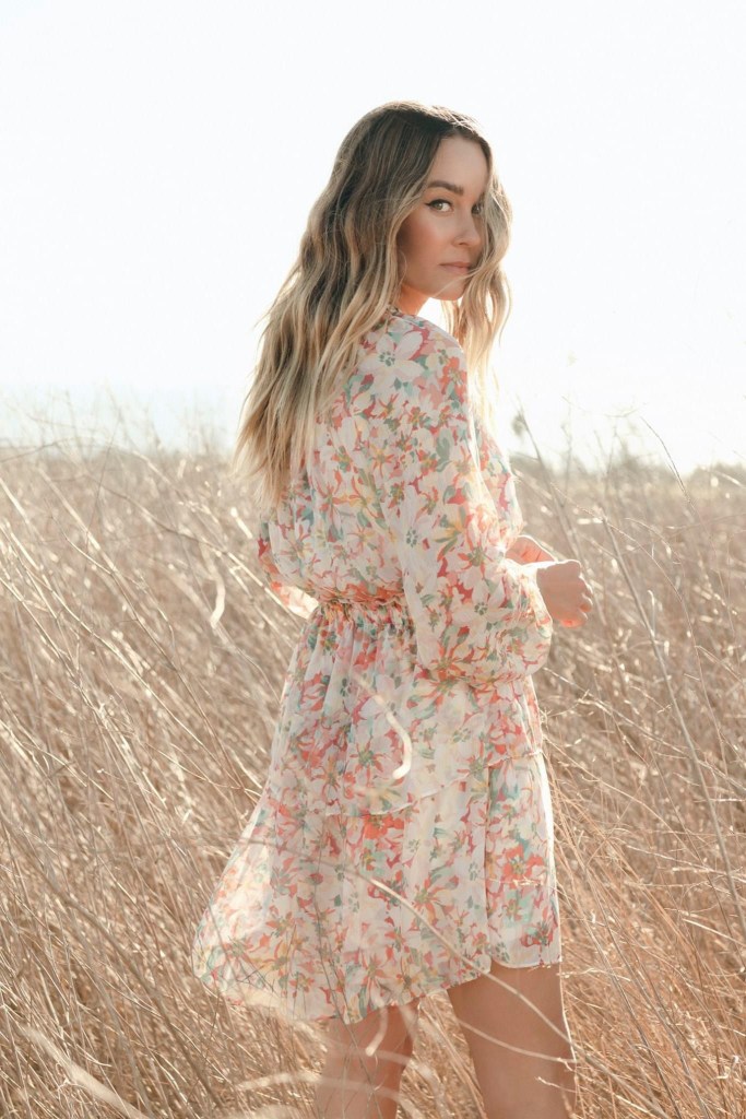 Defying 6 more weeks of Winter predicted by the Groundhog has become a given for those who got spring on their minds, Lauren Conrad tonight is one of them, who models her very own LC Lauren Conrad Long Sleeve Mini Peasant Dress at Kohl’s, a second to none dress of raglan long sleeves, notch neck, and ruffled hemline that allows you to spring ahead from winter.