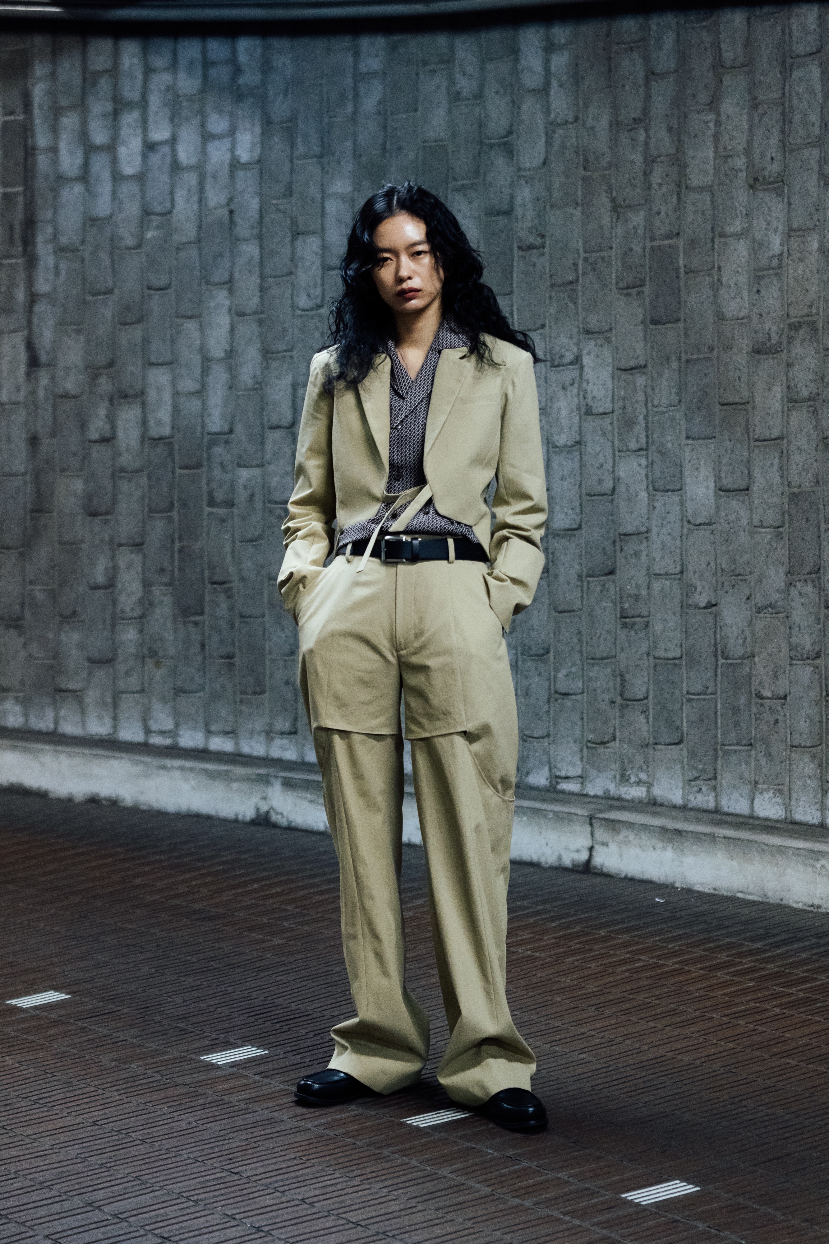 diaments colour presents an aesthetic for the “new normal” by making genderless and timeless pieces, unconfined by the rules of fashion. Because of his smaller frame, Oguchi has always embraced a more gender-fluid design language. A culture clash of different experiences are unified by functional silhouettes and chic detailing. Men’s pieces have elements of femininity that reference a medieval aesthetic. This can also be said about his designs for women. While his past experience was centered around womenswear, his own collection reflects a gender-neutral voice he hopes will reach broadly.