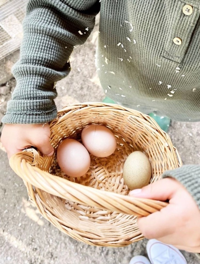 Lauren Conrad and her oldest son, Liam James Tell, went over the river and through the woods, to grandmother’s house they go, where Liam found himself swinging on the swing in the backyard, also holding grandma’s famous farm eggs appearing to be just hatched.