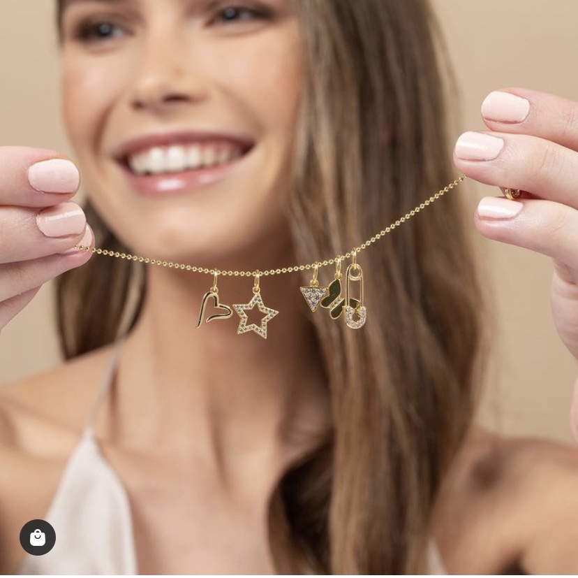 Uncommon James today wants you to practice your charm skills, the first step is acquiring the UJ Charm Bar that allows you to keep all of your UJ dainty jewels together in one place, without all your dainties getting lost or damaged, all including Studded Star Charm, Safety Pin Charm, Open Heart Charm, Butterfly Charm, and On The Ball Necklace.