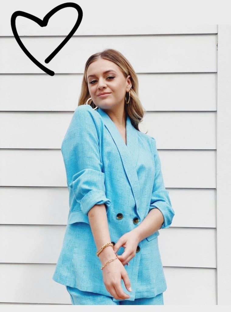With all the hearts in the world, and the beautifully designed pantsuits colored with the sky, Kristin Cavallari today notes of Kelsea Ballerini wearing Uncommon James bracelets and earrings, all gold plated and letting the outfit tell the story.