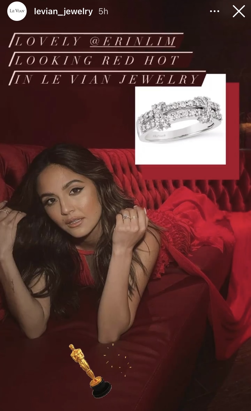 E! News reporter, Erin Lim, got her red carpet glare in on Sunday as Erin was not just there to see what the stars were wearing, but be apart of the red carpet parade itself in a horizontal pleated red dress, plus putting a ring on it with Le Vian silver and diamond ring to read the red in the room, and on the red carpet.