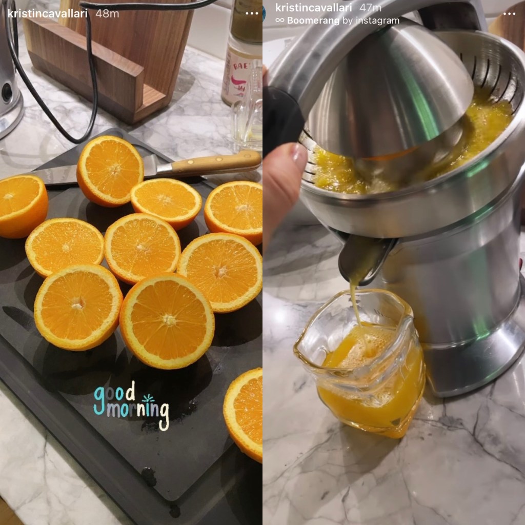 Kristin Cavallari fired off the weekend today by making some fresh squeezed orange juice, it’s certainly well-deserved after a very big day on Thursday when Kristin launched her new Uncommon Beauty skincare collection, striving to minimize your skincare routine with a clean and natural perspective.