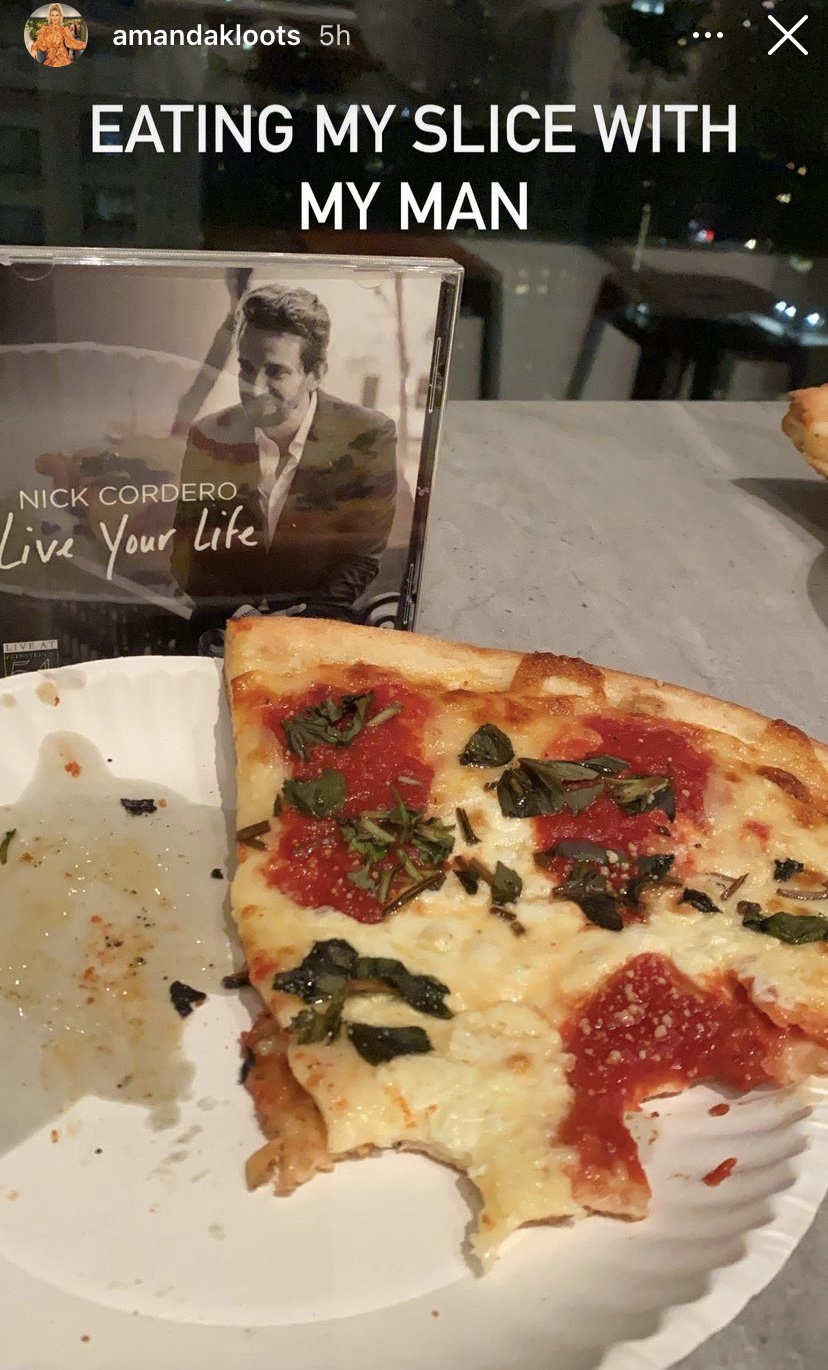 Amanda Kloots returned to New York City Thursday night as Amanda posted overnight early today that she landed at one of New York City’s famed airports, recalling the NYC pace all coming back to her, Amanda first stopped for pizza in Little Italy at one of her favorite places being “By The Slice”, then checked into her room where she ate pizza with someone near and dear to her, her late husband, Nick Cordero, where NYC was where Amanda first met Nick during her time on Broadway, Amanda’s in NYC this weekend to teach her AK Rope class at Equinox in Hudson Yards, and the first sign of a good weekend is encountering Mr. T on your flight.
