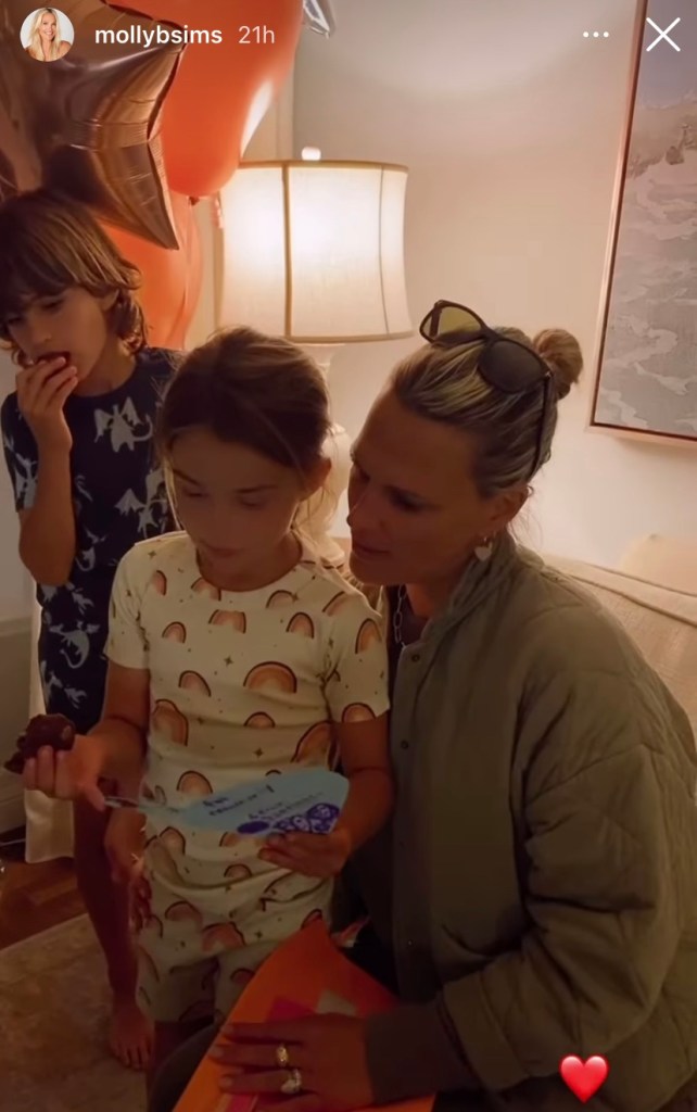 Kristin Cavallari’s Little James Clothing children’s collection, which is a junior of Uncommon James, made its way on Tuesday to loyal LJC client, Molly Sims, who’s 2 kids are wearing dragon and animal prints while reading a homemade birthday card her 2 kids made for Molly’s birthday.