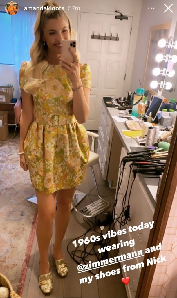 Right before Amanda Kloots hosted “The Talk” today on CBS, Amanda photo-op’ed herself in the mirror with a gorgeous Zimmermann yellow dress, but the main thing was that Amanda was wearing shoes which could’ve been gifted to her by her late husband, Nick Cordero.