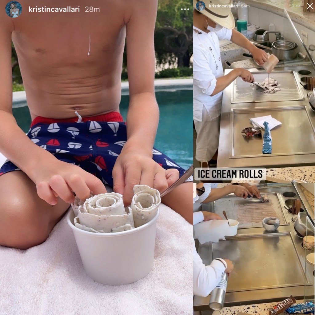 Continuing her vacation adventure today, Kristin Cavallari got to witness something they’ve never seen in person before, the making and rolling up of Japanese ice cream on site and on demand where Kristin and her 3 children were amazed, oldest son, Camden Jacks Cutler, got to have his own generate helping of the astonishing ice cream made on site.