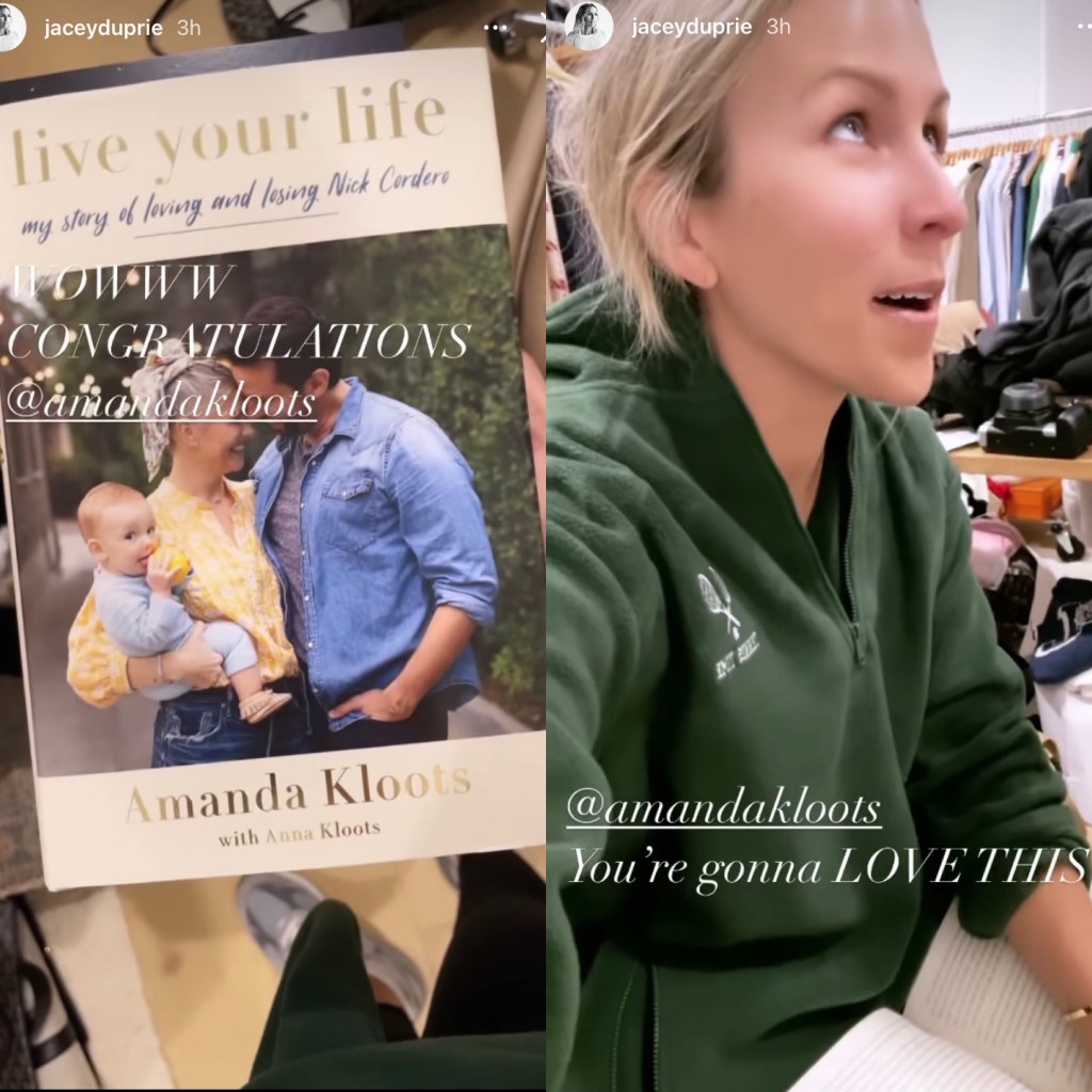 Jacey Duprie, who’s a popular entrepreneur and author, expressed on Monday how much she loves reading Amanda Kloots new “Live Your Life” memoir which was just released today, plus Jacey notes that opening up “Live Your Life”, the pages land on where she’s mentioned in the book.