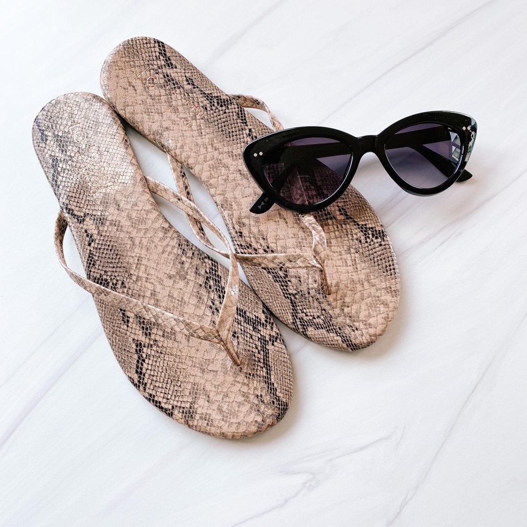 The look of Summer is here with LC Lauren Conrad Honey Flip Flop Sandals paired with LC Sunglasses for a nick smooth snake skin look, plus the LC Lauren Conrad Instagram story shows off their brand-new sandals just in time for Summer’s arrival on Monday.