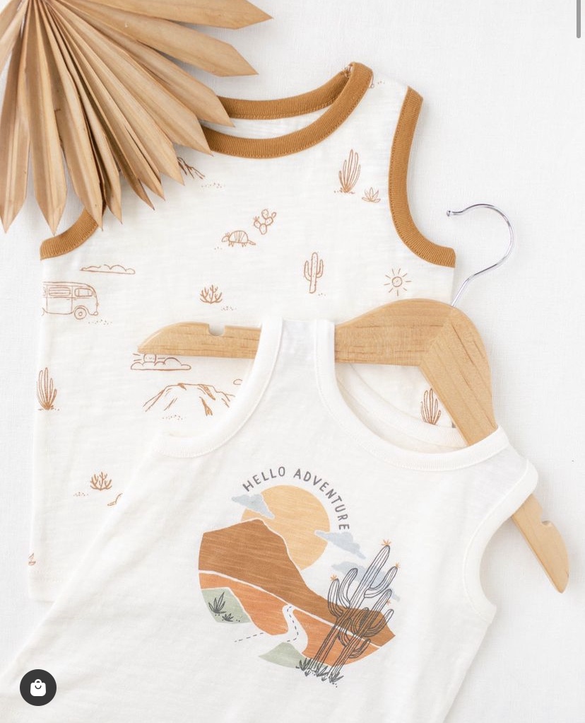 Little Co. by Lauren Conrad today is landing on Summer in a very big way, it’s having and adventure with the LC Organic Print Tank that says hello to adventure without being shy about it, cactuses, mountains, and the sun keep this baby