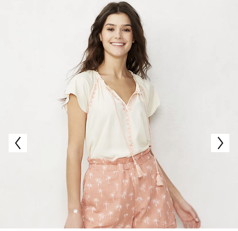 The LC Lauren Conrad Instagram story tonight features a perfect ensemble to kick off this first full day of Summer with an LC Kohl’s outfit of Cap Sleeve Boho Top, Braided-Waist High-Waisted Jean Shorts, Galena Wedge Sandals, and 5-Row Multi Chain Necklace.