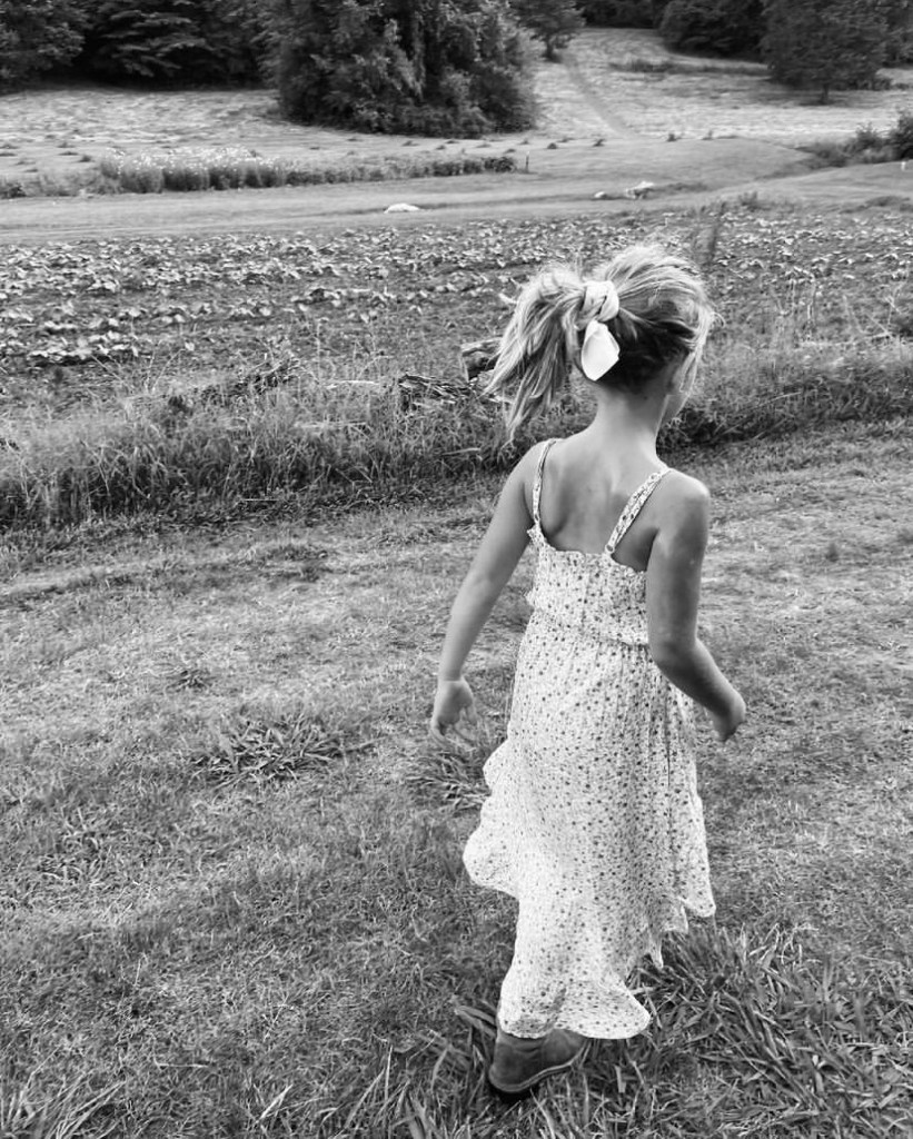 Kristin Cavallari today got a beautiful shot of her youngest child, and her only daughter, Saylor James Cutler, running on the farm that’s in the backyard of their home outside Nashville, Tennessee, a black and white shot of Saylor in a wonderful polka dot dress.