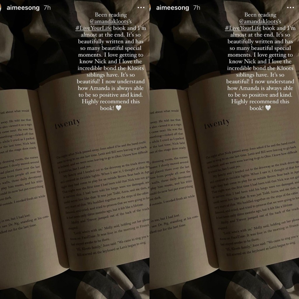 Entrepreneur, Aimee Song, who’s also a New York Times Bestseller Author, just like Amanda Kloots became with “Live Your Life” last week, got to understand and love both Nick Cordero and Amanda better when reading “Live Your Life”, Aimee learns of the incredible spirit that Nick embodies as he was alive on this Earth, but Aimee really fell in love with Amanda because of Amanda’s upbeat and positive energy, plus the incredible bone that Amanda has with her sister, Anna, and witnessing the beautifully written book that is “Live Your Life”.