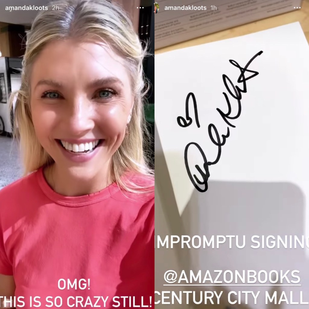 Amanda Kloots surprised fans tonight with a sudden book signing over at Westfield Century City book store out in Century City, California by signing 6 copies of her New York Times Bestseller memoir of Nick Cordero, “Live Your Life”, where Amanda tells the story about her late husband, Nick’s 95 day battle with COVID19 before dying from the virus one year ago this coming Monday.