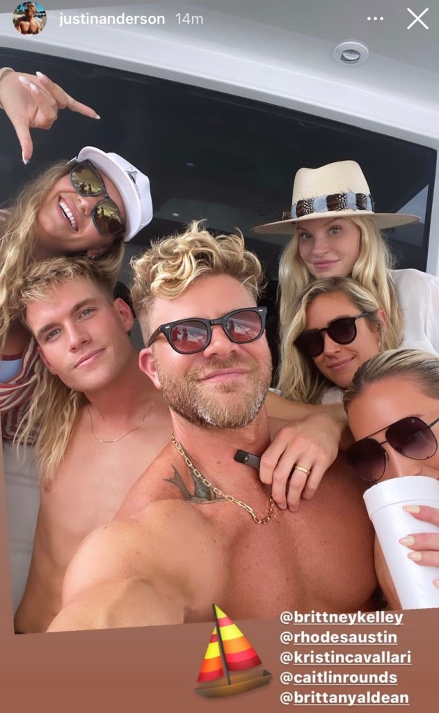 Kristin Cavallari’s Best Friend Forever, Justin Anderson, took a moment today to celebrate the 4th Of July weekend with all his dear friends, including his partner, Austin Rhodes, close friends, Caitlin Rounds and Brittany Aldean, and of course, his long time BFF, Kristin Cavallari, all bikini clad and trunk clad.