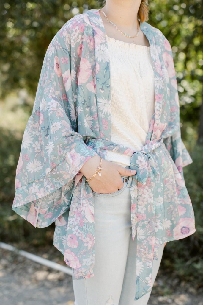 LC Lauren Conrad tonight is currently loving the lightweight layers and pretty floral prints of LC Kohl’s 60’s Bloom Tie-Front Kimono that’s a floral ruana and a perfect layer for breezy days.