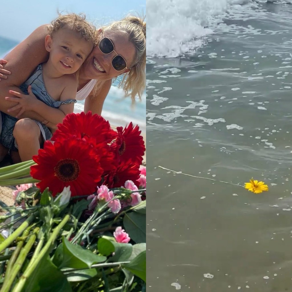 Nick Cordero’s widow, Amanda Kloots, went down by Manhattan Beach, California to hold a small memorial for her late husband, where Amanda did the exact same thing just one year ago today, Amanda and 2-year-old son, Elvis, were down by the water throwing flowers with a few friends they met last year on this date, and it was this past Monday that Amanda celebrated the one year anniversary of Nick’s death.