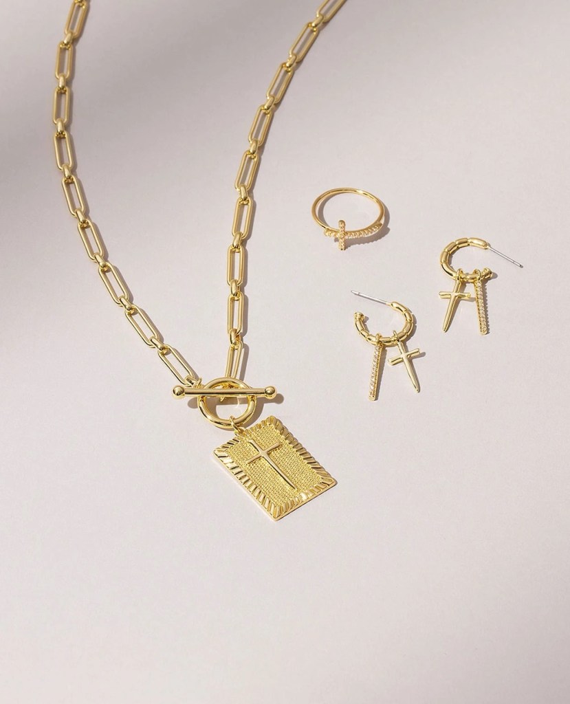 Kristin Cavallari’s Uncommon James today cements it’s love for crosses while revealing the true inspiration of the UJ Fall 2021 collection, which also stems from cool grandmas with spells and “The Craft” movie, this cross capsule includes such items like UJ Cross Pendant Necklace, Cross Ring, Star Cross Lover Huggies, Cross Dangle Studs, Broken Heart Necklace, and Cross Charm in gold.