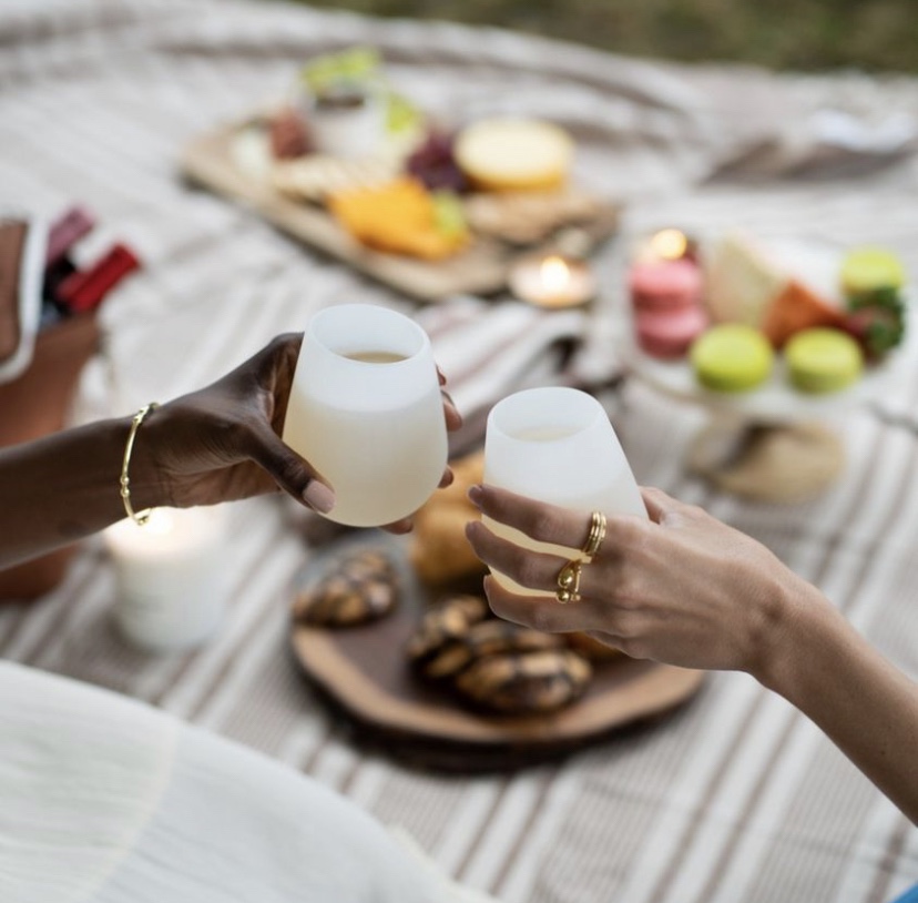 Yes, it’s Monday and the weekend is over, but that doesn’t mean you can start planning now for next weekend or even taking a moment out of your week whether it’s vacation or not to create a weekend moment, do that with Uncommon James Silicone Wine Glasses where the day’s picnic doesn’t have to be spoiled by broken glasses, plus don’t forget UJ Wooden Serving Board to place your fruit and cheese, plus UJ gold with Escape Cuff Necklace and Be Known Ring.