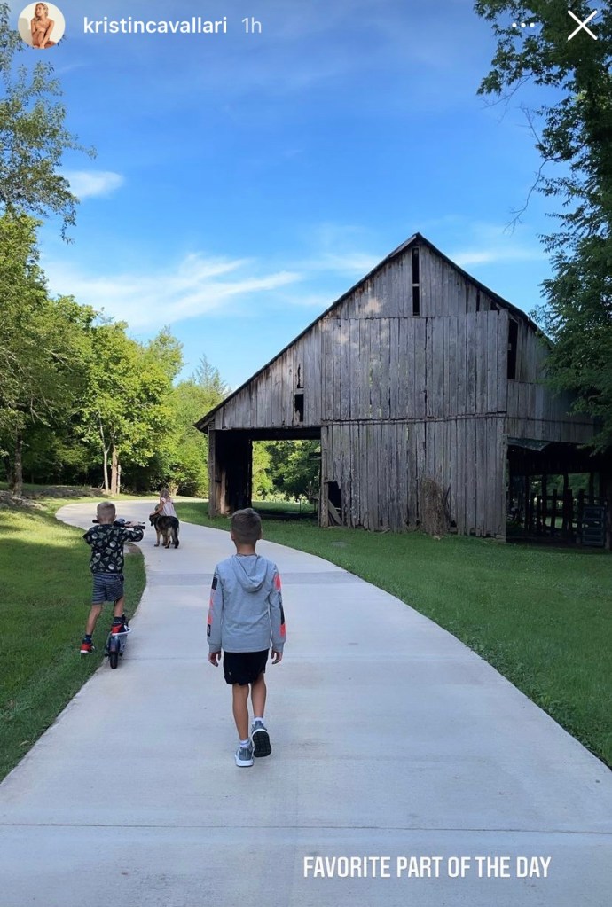 Kristin Cavallari finally came across her favorite part of the day today where she and her three children are hanging out in the backyard of their outside Nashville, Tennessee where there’s lots of room to run around.