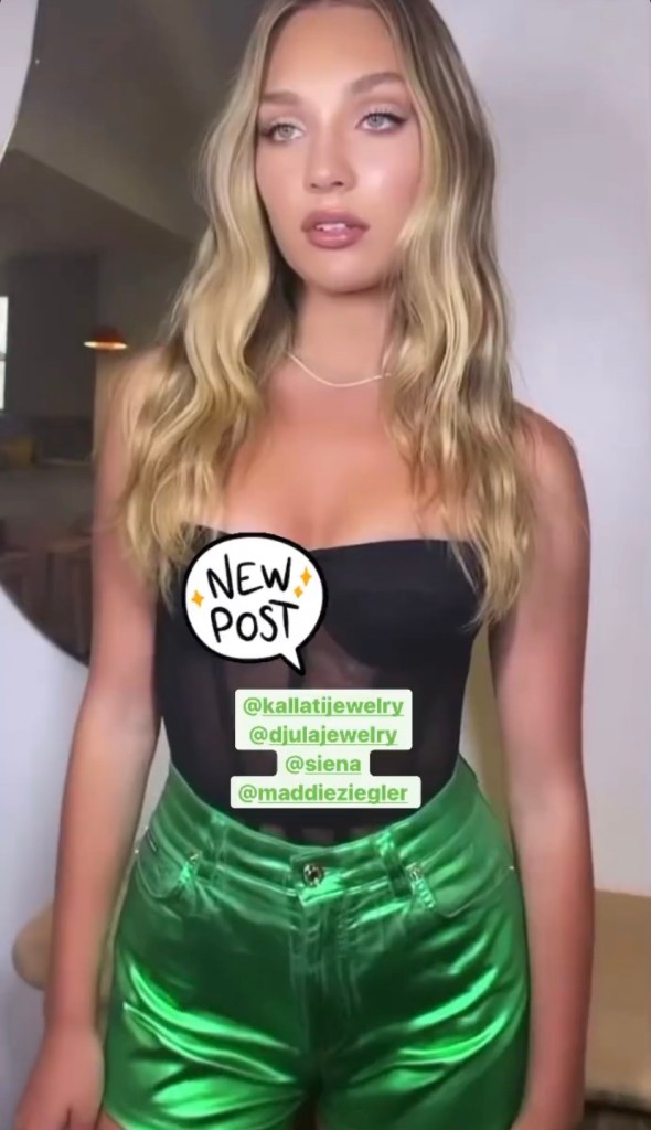 “Dance Mom” star trooper, and queen of dance, Maddie Ziegler, pirouetted her way to the “Space Jam: A New Legacy” movie premiere in 2 piece green blazer and hot pants by Dolce and Gabbana, and styled by Siena Montesano where Maddie kicked ball changed onto Djula Jewelry and Kallati Jewelry necklaces and rings, plus black semi-silhouette leotard under green hot pants, which Dorazio PR proudly showed off today.