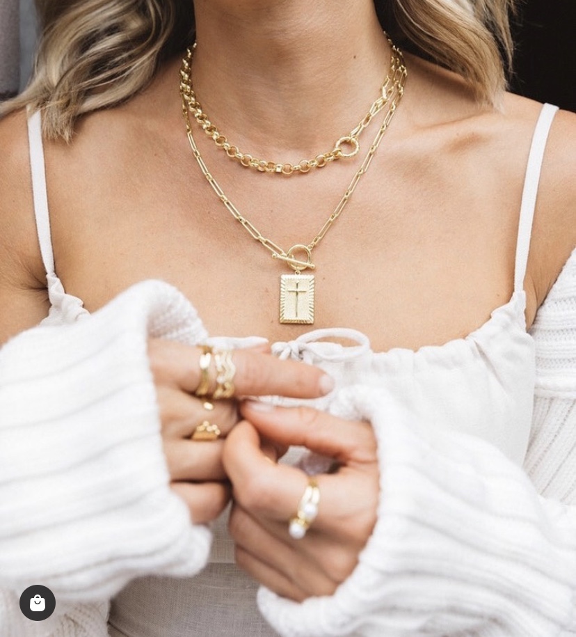 Kristin Cavallari created the perfect combo today of Uncommon James Fall 2021 that’s vintage, cool grandma, and “The Craft” movie for a layered go to look when the weather’s still warm in the Fall, Kristin comprises UJ Seeing Double Chain Necklace, Caged Pearl Earring, Cross Pendant Necklace, and Vintage 5 Layered Ring Set that lives up to the layered goodness Kristin has with Uncommon James, plus UJ’s having a big sale now with over 70 items just added.
