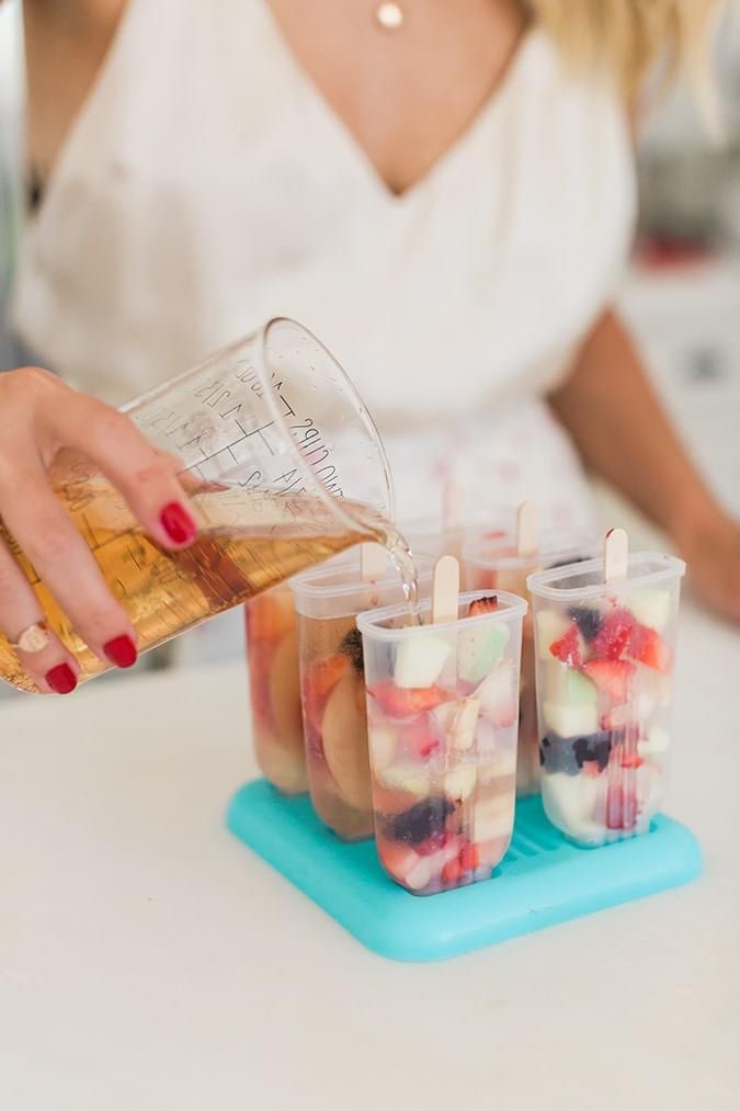 Lauren Conrad tonight presents a fun and unique way to enjoy popsicle in the most adult way possible, it’s White Sangria Peach Berry Popsicles made of dry white wine, simple syrup, sugar and water, strawberries, apples, peaches, blackberries, and orange slices that do way more than a snack on the children’s soccer field.
