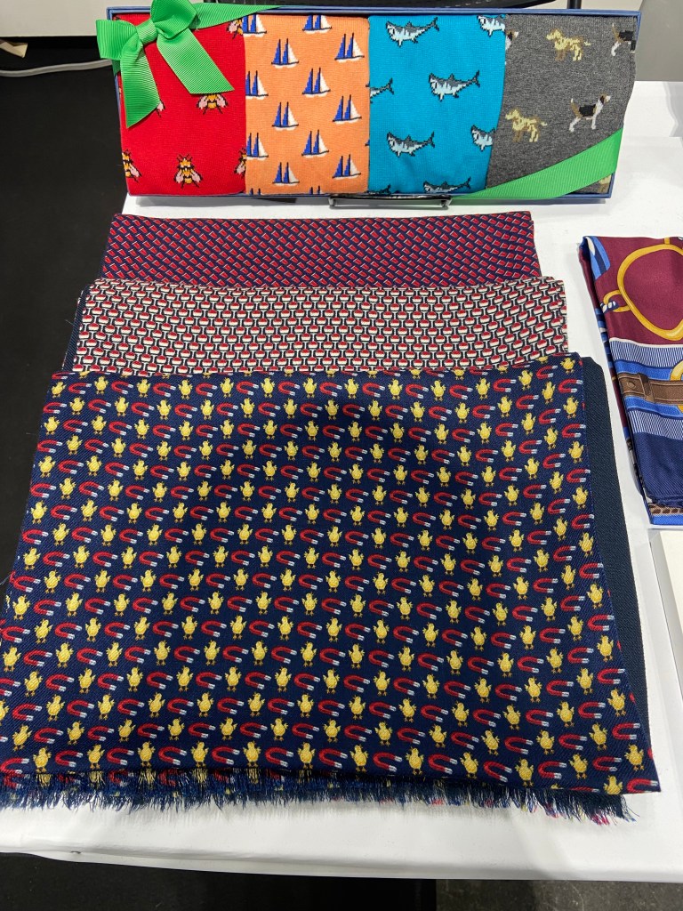Lazyjack Press is founded on the principle of everything that’s designed with the highest quality of material, and then each the ties, socks, bow ties, scarves, and handkerchiefs has a really fun name and are designed according to that name like “Trust Me, I’m A Doctor” with stethoscope patterns, and “Chick Magnet” with little chickens and magnets.