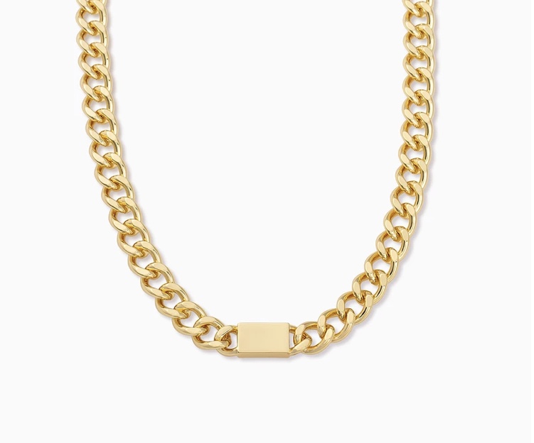 A bold gold chain connected by a flat square detail, the Edgy Chain Necklace is about to be your everyday go-to for layering or on its own.